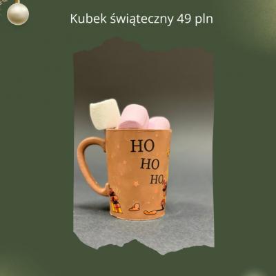 Kubek świąteczny odlewany z wysokiej jakości wytrawnej czekolady według wariantu. Na kubku naniesiony jest motyw bożonarodzeniowy.