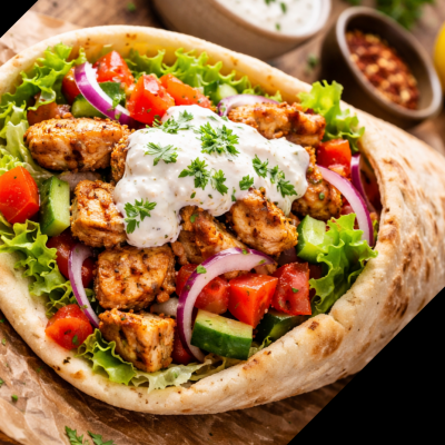 250g mięsa/ kapusta pekińska/ ogórek/ ogórek konserwowy/ pomidor/ cebula/ sos kebabowy