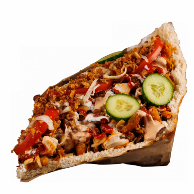 250g mięsa/ kapusta pekińska/ ogórek/ ogórek konserwowy/ pomidor/ cebula/ sos kebabowy