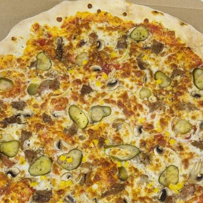 SOS POM 2. SER MOZZARELLA 350G/150G 3. MIESO kurczak 200G/100G 4. CEBULA 50G/25G 5. POMIDOR 50G/25G 6. OGÓREK KONSERWOWY 20G/10G 7. SZCYPTA OREGANO