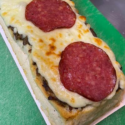 36cm bagietka/ farsz pieczarkowy/peperoni/ser cheddar/ser cheddar red /cebula prazona / sos