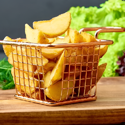 Frytki wiejskie z oliwą truflową, parmezanem, natką pietruszki.