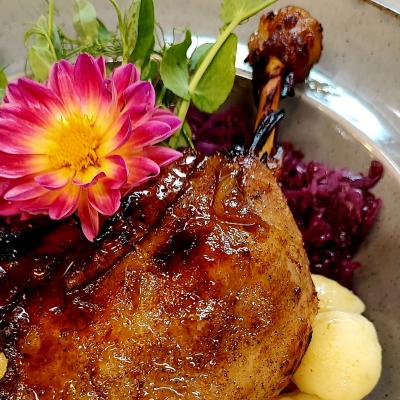 Soczysta, z chrupiącą skórką! Taka jest nasza kaczka podana w towarzystwie modrej kapusty z żurawiną!
