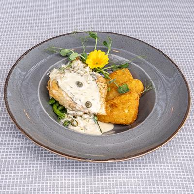 Papardelle z ogórka ze śmietaną, puree ziemniaczane